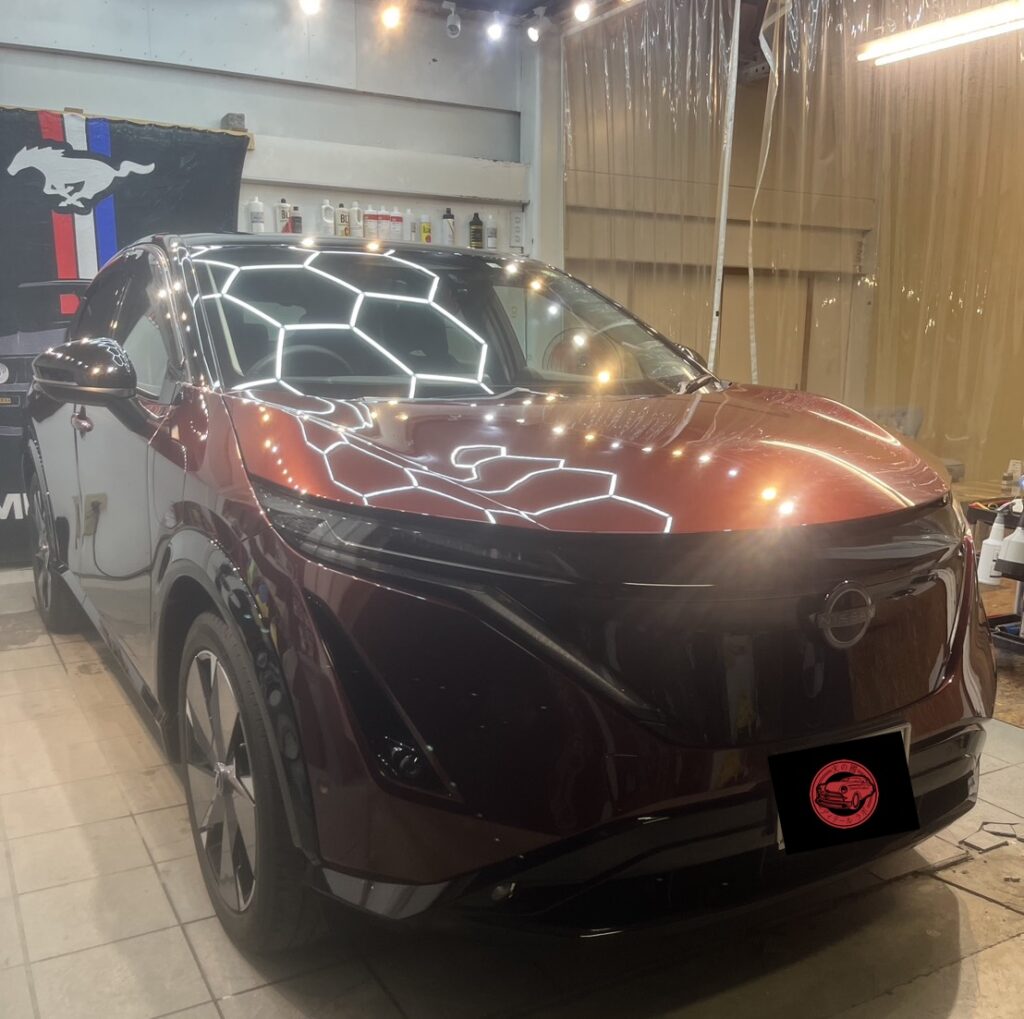 今回は 日産アリア (新車) に、当店自慢の ハイエンドセラミックコーティング(¥103,600) を施工させていただきました。